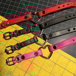 Heart o-ring bracelets made of high-quality leather and sealed with a protective finish. Buckle closure.
