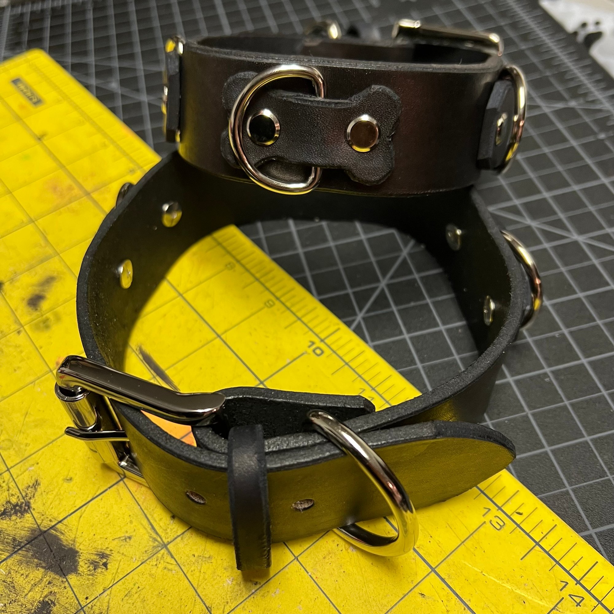 Heavyweight dog collar. Made of thick, high-quality leather and sealed with a protective finish. 1.5" wide.