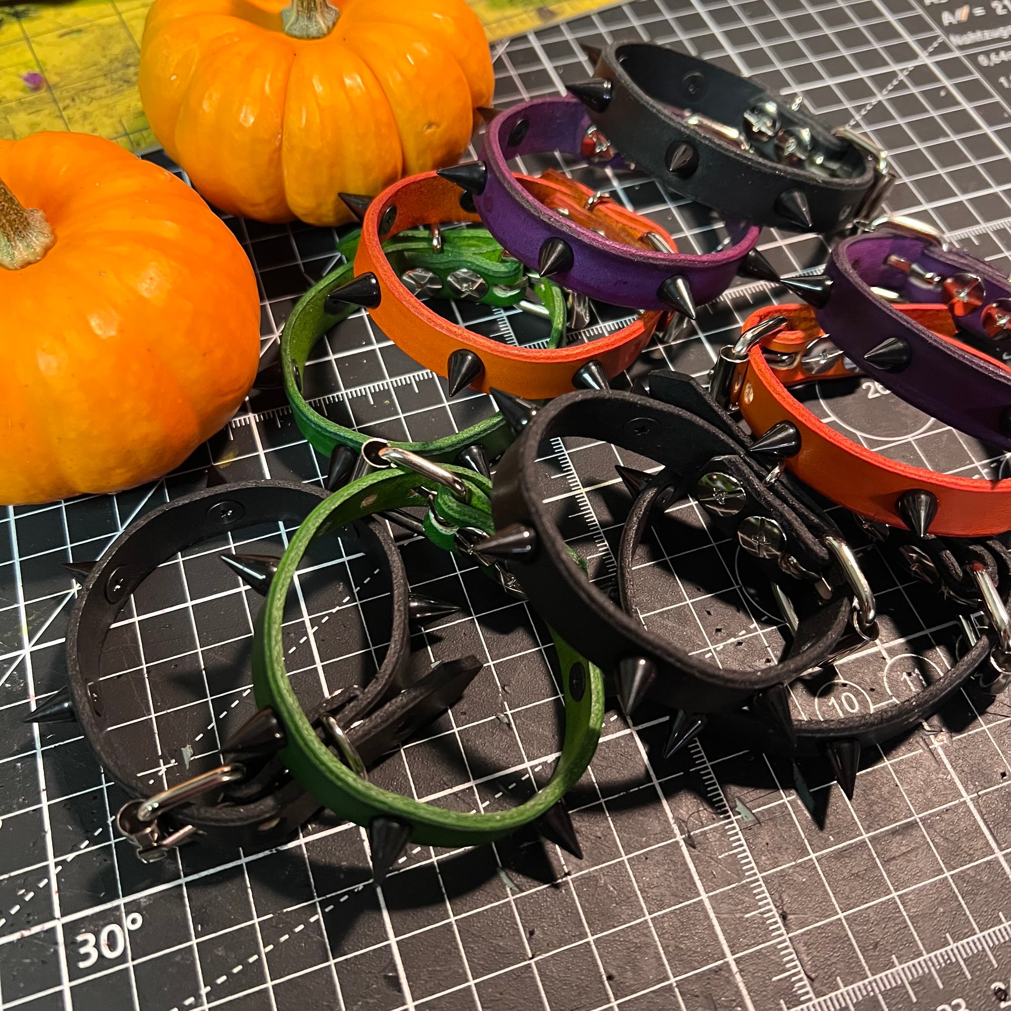 Spiked Halloween bracelets made of high-quality leather with a buckle closure.